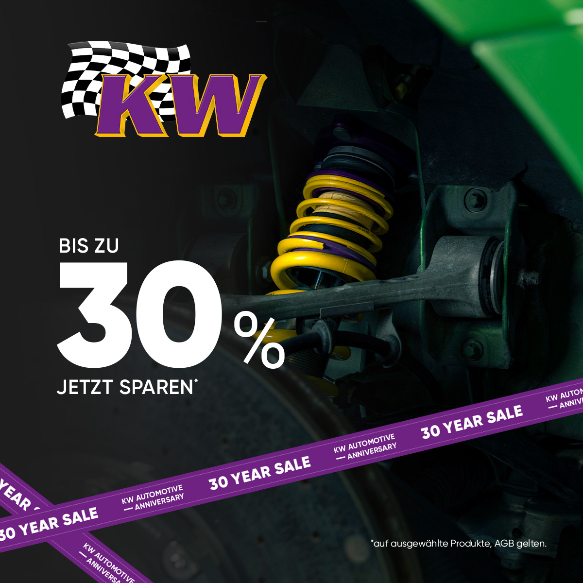 30 Jahre KW Automotive! Im 30 Year Sale sind ausgewählte Fahrwerksartikel der Marke KW um bis zu 30% reduziert!